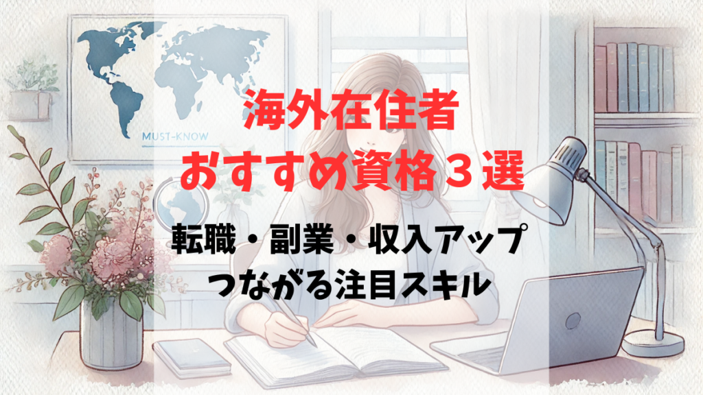 この記事では、海外在住中に向けて、帰国後のキャリアや、収入アップ、副業におすすめの資格3選をご紹介します。